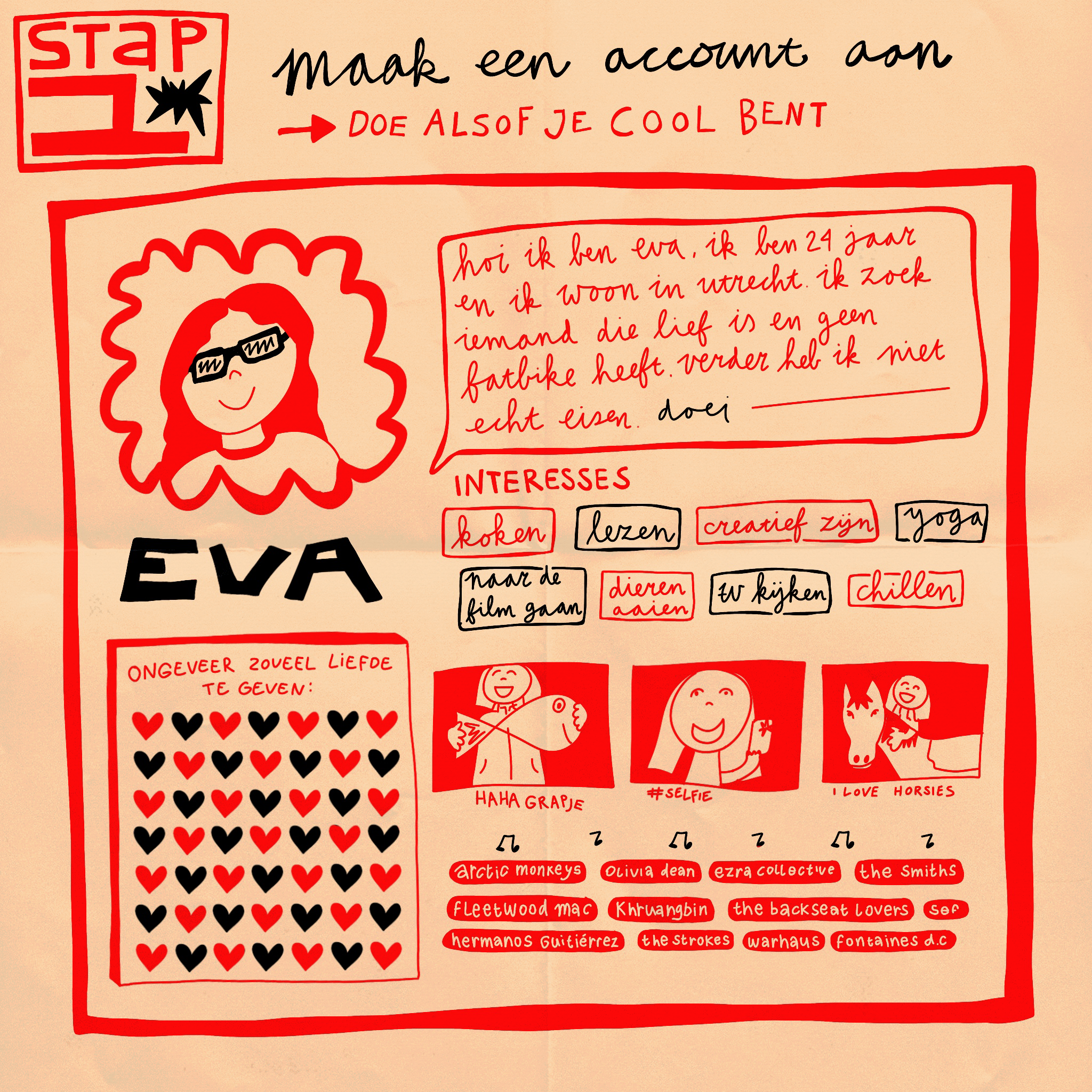 Tijdens mijn studie ben ik er achter gekomen dat ik het heel leuk vind om te illustreren, animeren, zeefdrukken, risoprinten en linosnijden.