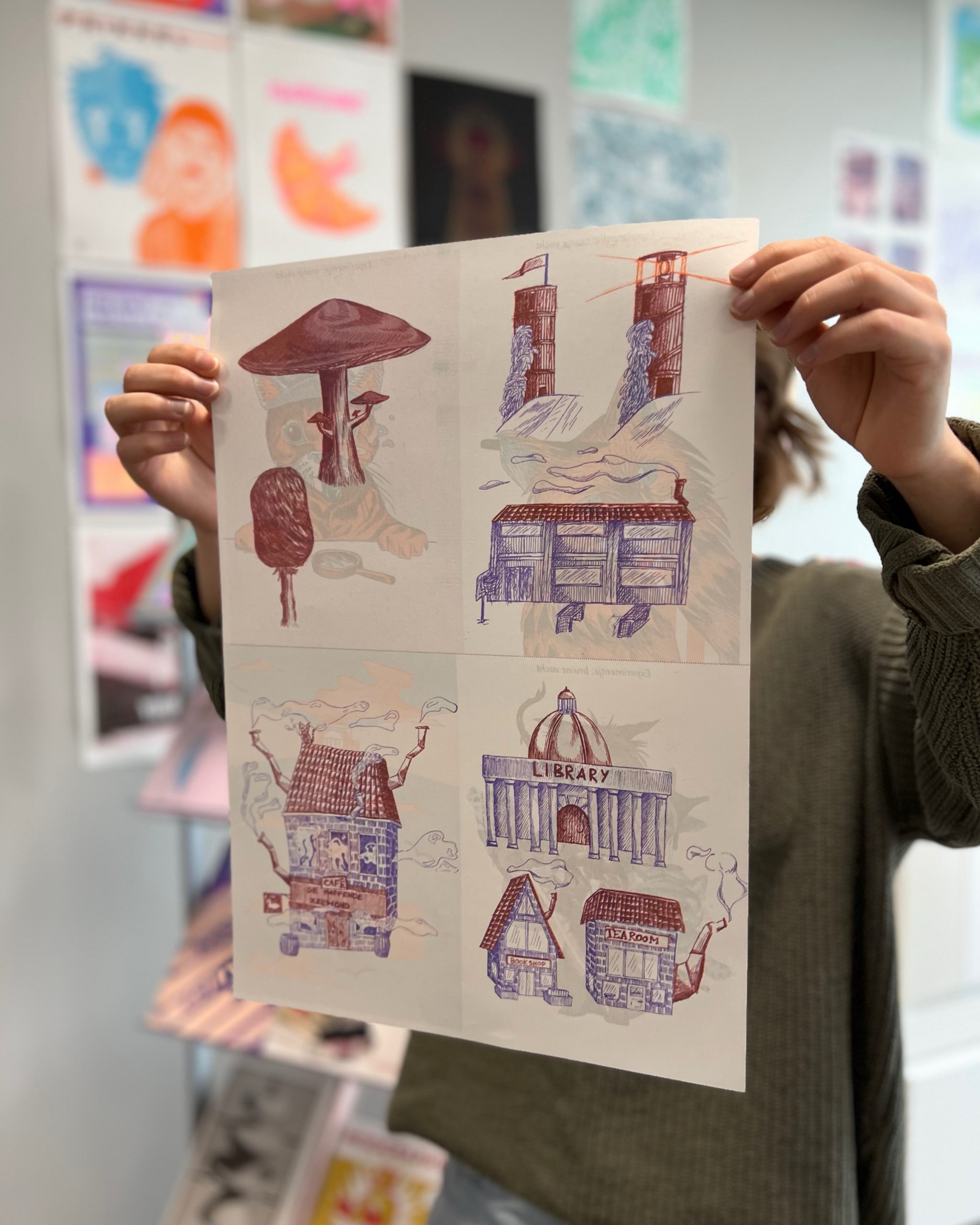 ‘In het 1ste jaar kocht ik mijn eerste dummy met het doel elke dag iets te gaan tekenen. Na twee jaar was die vol. Nu ik de tweede bijna vol heb, vond ik het tijd om een aantal illustraties eens te gaan riso-printen.